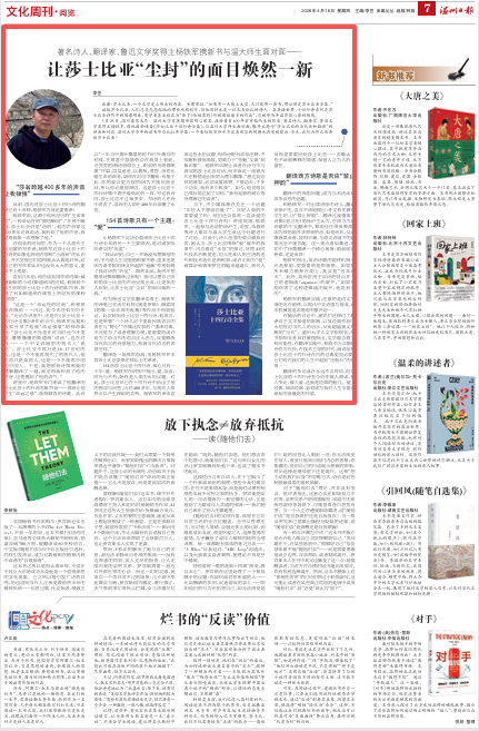 “我认识到,自己一开始没有理解他的诗,不光是人生经验的积累不够,更多还是因为诸多陈旧译文所起的‘遮蔽’作用妨碍了我对诗的‘听觉’。既然如此,我何不把整部诗集都翻译过来呢?我可以把自己听到的莎士比亚的声音呈现出来,让更多的人听到,让莎士比亚‘尘封’的面目焕然一新。”